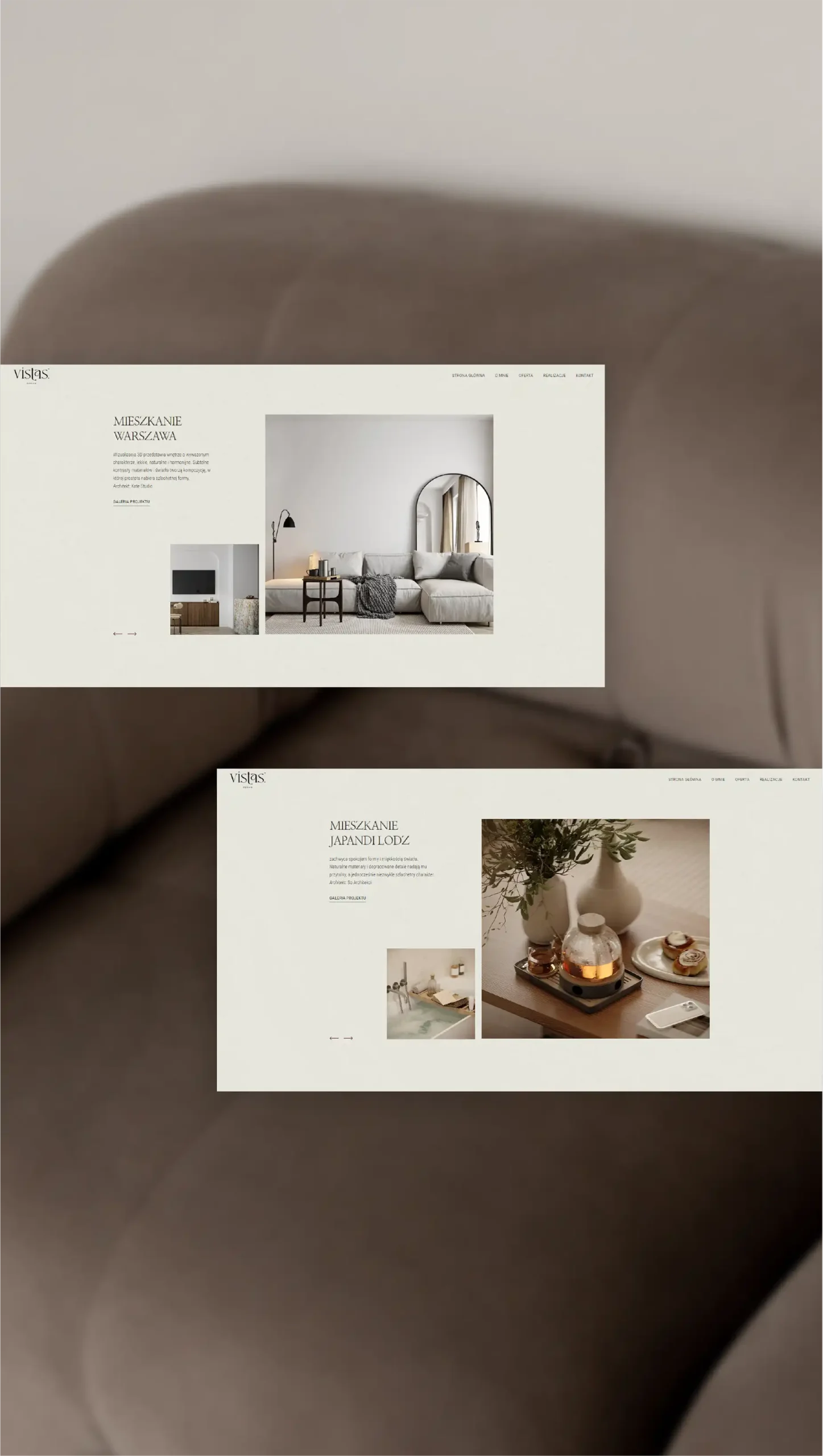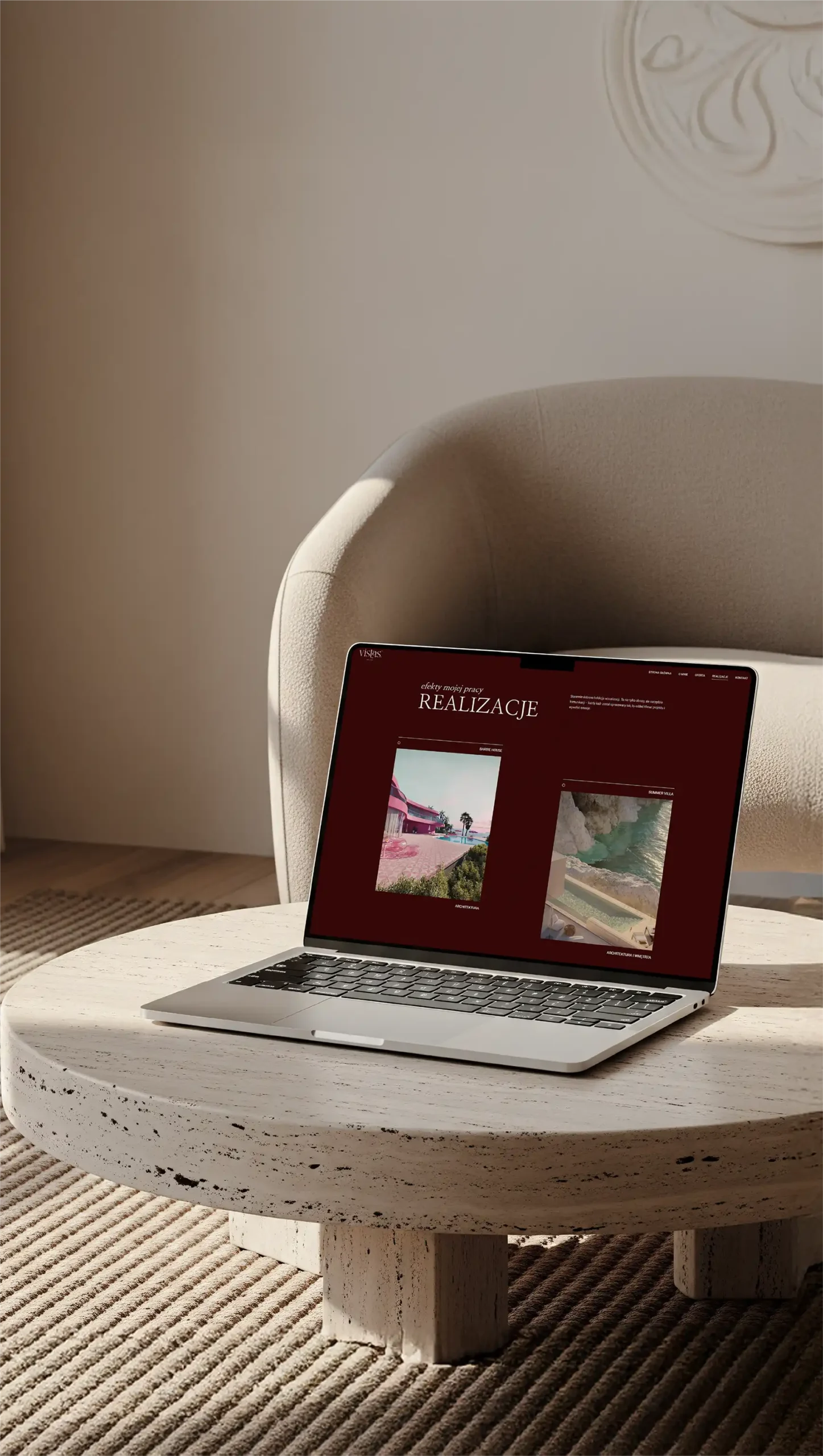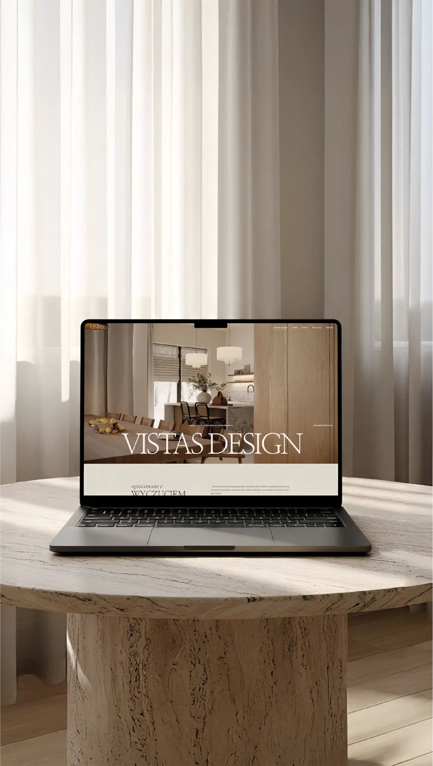 Strona Vistas Design to połączenie eleganckiego minimalizmu z ciepłą, naturalną kolorystyką. Jasna baza, szlachetna typografia i duże zdjęcia realizacji budują wrażenie harmonii i spokoju. Kontrastowa sekcja w głębokim odcieniu burgundu dodaje charakteru i przełamuje stonowaną estetykę. Całość jest uporządkowana, wyważona i dopracowana w detalu bez chaosu i z wyczuciem proporcji.